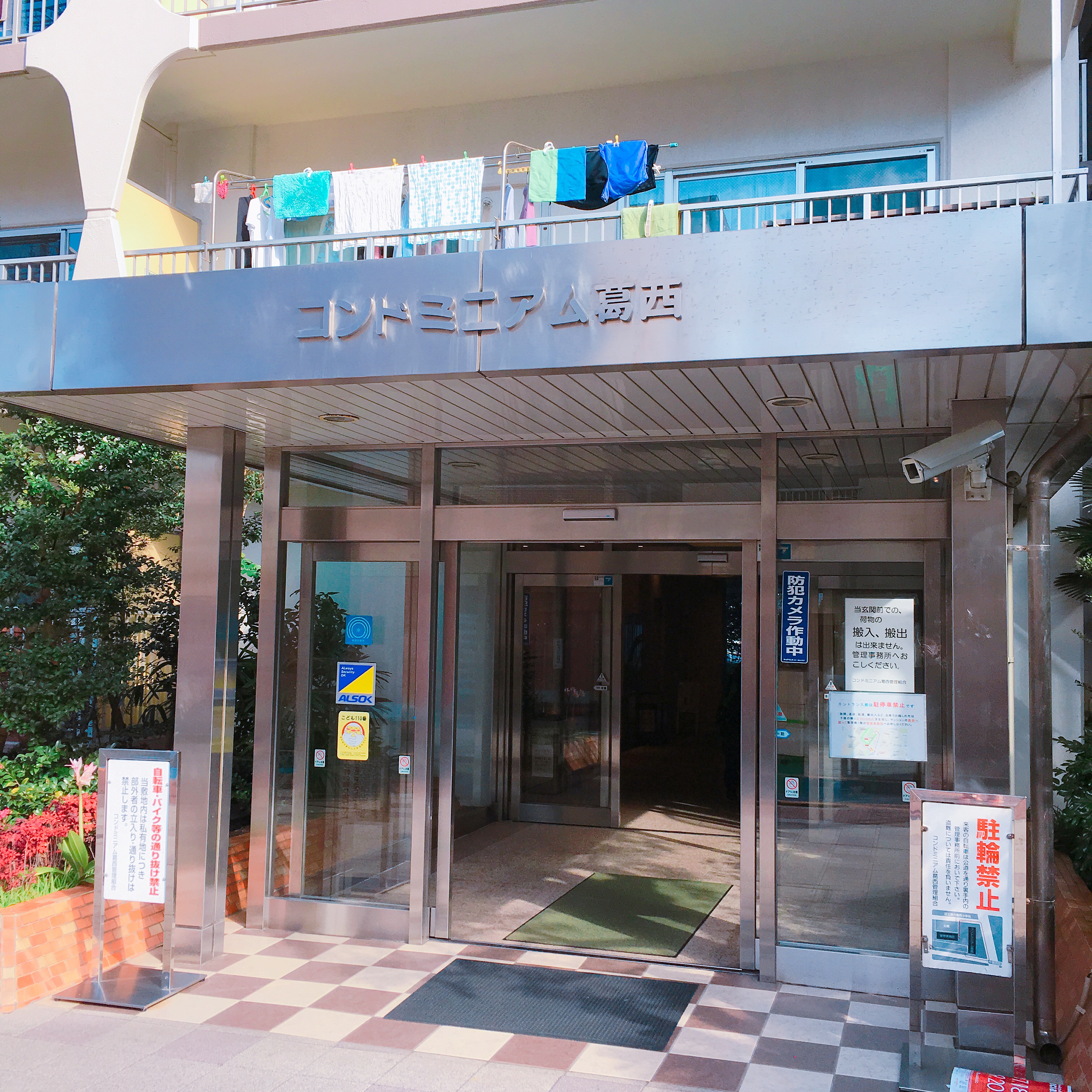 こちら、コの字の真ん中部分に建つ管理棟です。2階が集会室になっていて、たまにマンションのイベントなんかでも使用されます。