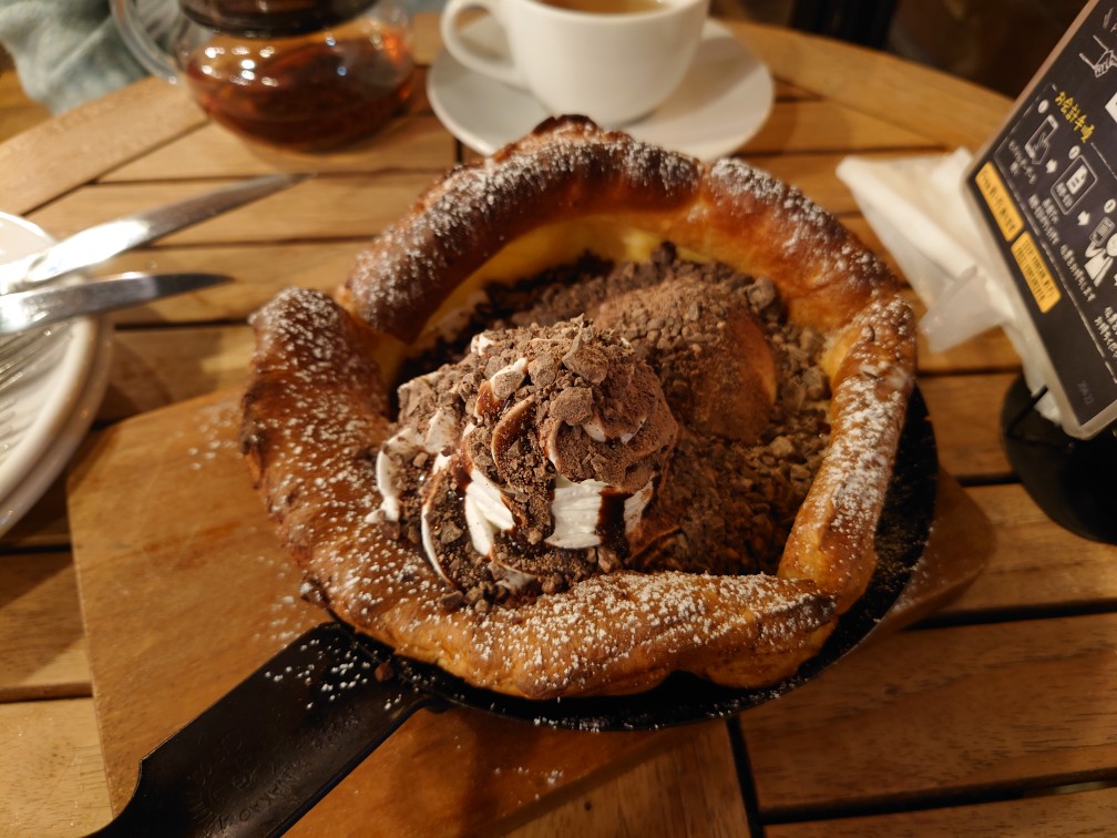 「ダッチベイビーパンケーキ」というヨーロッパスタイルのパンケーキで、外はカリっと中はもっちりとした食感が特徴なんだそう。