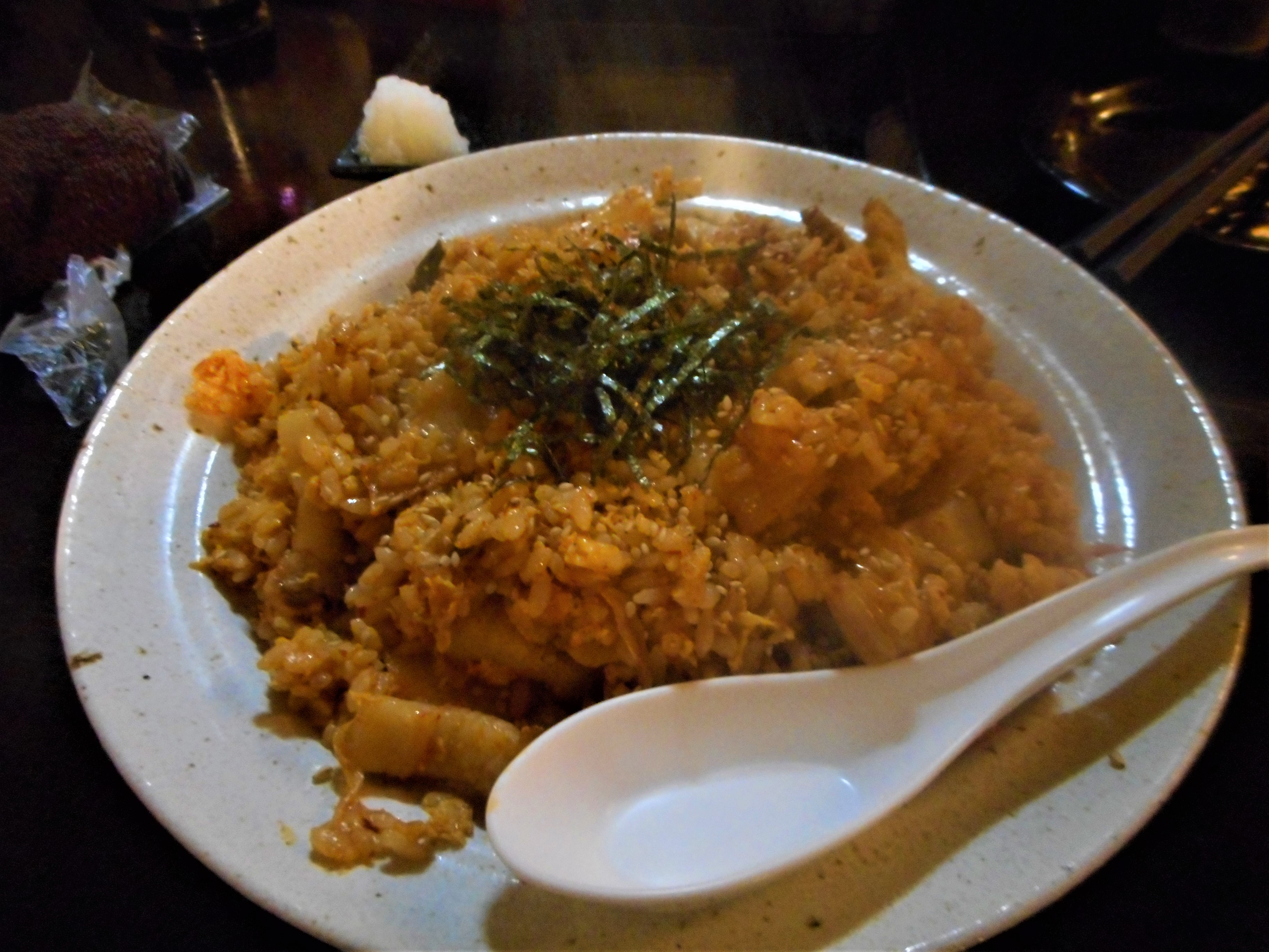豚肉は脂身たっぷり、それでいて脂っこくないマイルドさです。チャーハンの香ばしい風味にキムチの酸味が加わり、レンゲが止まりません。